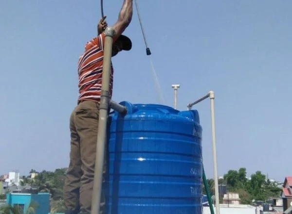 • غسيل خزانات المياه من الخارج بمواد تنظيف خزانات المياه مصرح بها تساعد على التخلص من الأوساخ العالقة عليها.